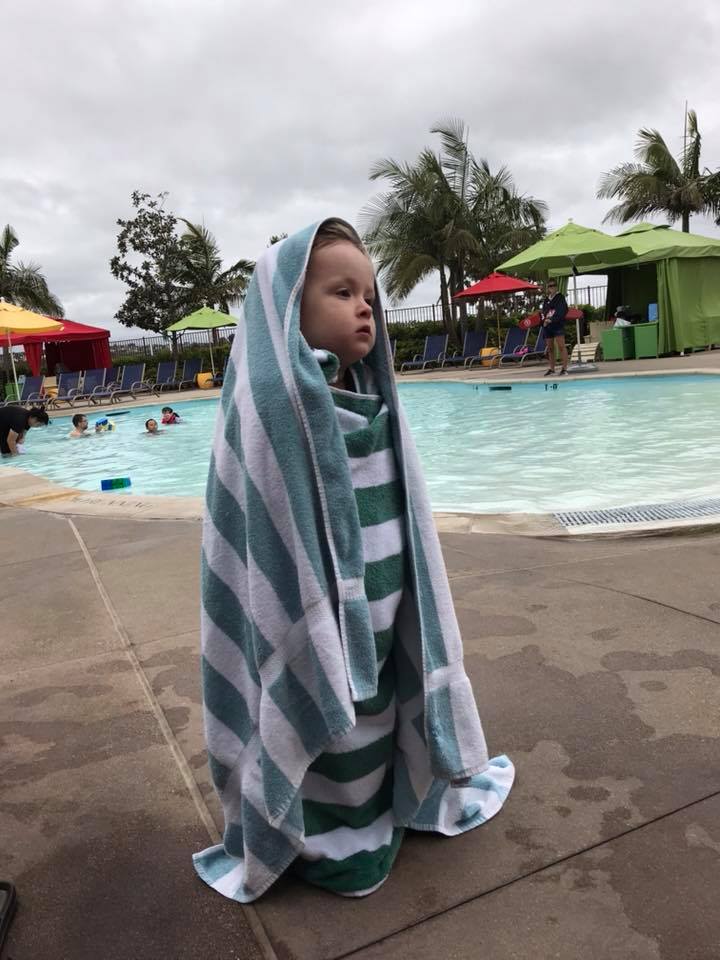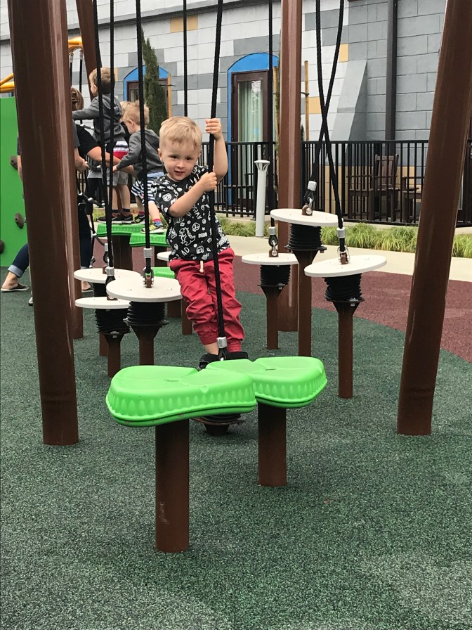 Rob’s crew stayed at the neighboring Castle Hotel. Guests can use both resorts amenities. They had a Princess themed room with a similar layout to ours. The grounds and hotel were slightly nicer, definitely newer. There was a great playground in the Castle courtyard that had a toddler section with foam Lego blocks and smaller apparatuses. The whole play area was fenced to prevent runaway children. The outside food and drink rule seemed to be cool here too. We openly had a few wobbly pops and gave the kids some cut up fruit and crackers without getting scolded.