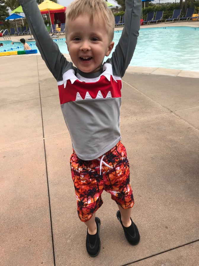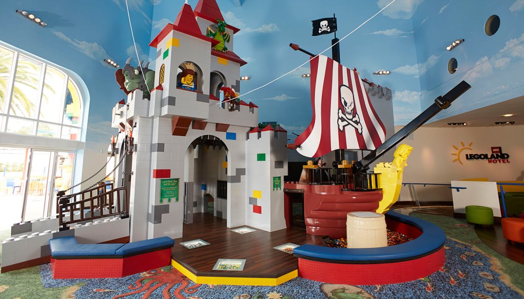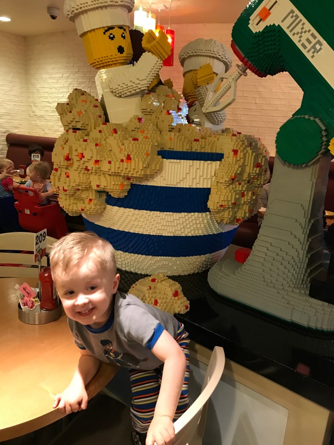 The hotel. A holy grail of children’s travel. I can not express how impressed I was. There are 2 resorts directly at the entrance of the Legoland theme park. We stayed at the Legoland Hotel, as I liked the classic Lego theme and it was more cost effective. For just over $1000 USD, we got a 4 weeknight stay and 4 two day park hopper passes. We chose the kingdom theme chamber with a balcony. Cool décor and Lego ornaments accessorize the space. Rooms have a king size bed and then a semiprivate section around the corner with a bunk bed and tv. The bunk had a trundle if you need an extra. There are loose Lego blocks for the kids to play with (we also “borrowed” some from the other pits around the hotel). I discovered some of this Lego seemed to make it into Jett’s luggage when I was unpacking at home. The safe gets restocked with a small Lego gift set each for the kids every morning. They get clues for a treasure hunt to figure out the new code to unlock it. My only criticism would be the money grabbing $28 nightly resort fee. I hate when hotels do this. It is such a shady practice in my opinion. If I’m going to get screwed please just be up front about it.