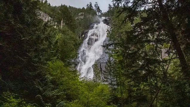 Shannon Falls in a nice quick stop just off the Sea to Sky highway. It’s a day use provincial park with spots for a picnic lunch or carefully concealed wobbly pop. A more enthusiastic traveler could do a proper hike, but we typically just walk the few minutes to the waterfall viewing platforms and chill in the pristine west coast rain forest.