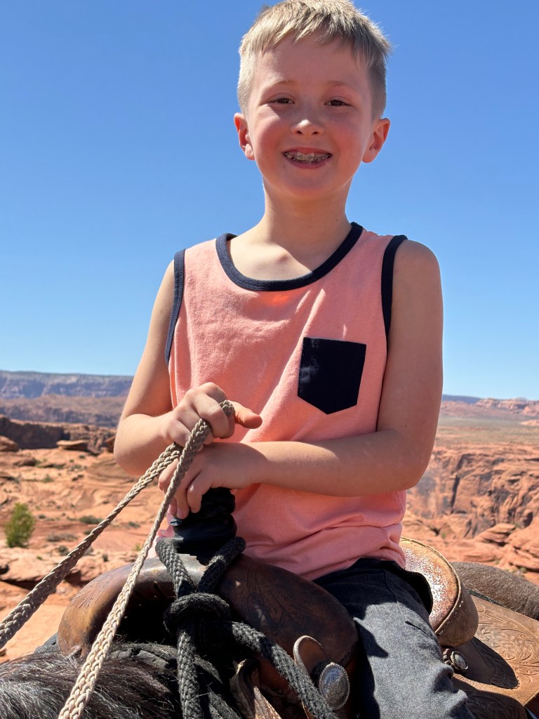 The boy loves him some animals so we indulged in a horseback ride to the stunning Horseshoe Bend lookout just outside of Page. You can also drive to the free lookout off the highway but it gets very crowded. We booked a Navajo guide who walked our horses across the desert landscape to a private observatory. The view was amaze balls. Jett was in his glory on the horse and he even conned the guide into letting him canter for a few minutes.