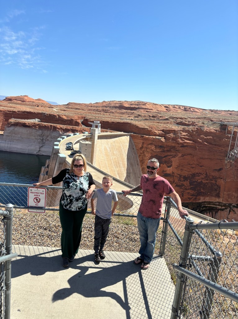 We did a quick stop at the Glen Canyon Dam and Carl Hayden Visitor Center, located on the Colorado River and Lake Powell, on the way out of town. It had a mediocre museum. The making of the dam film in the visitors center was interesting and hopefully the kids learned something about hydroelectric power or concrete construction.