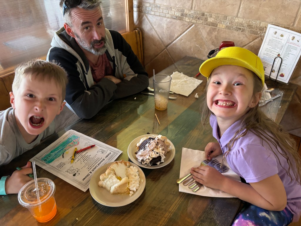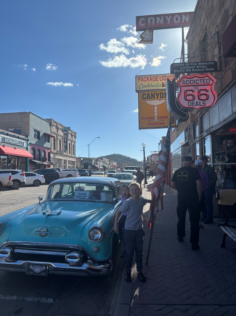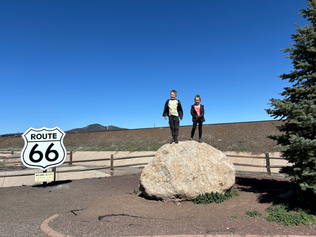 The Disney movie, Cars, took place in Radiator Springs, which is modelled off of the Americana style downtown district of Williams. Lots of neon, dated western style buildings, old gas stations, gifts shops and memorabilia. Goldie’s Route 66 Diner was directly across from our awful Travelodge right in the center of town. The food was delicious. The hotel room was scary. Don’t stay there. We also hit up the Pine Country Restaurant known for it’s display case of a gazillion different home made pies and desserts. Of course the kids wanted to do the overpriced Canyon Coaster Park, one of those high speed metal tracks. We did some tacky tourist shopping and rested for a day.